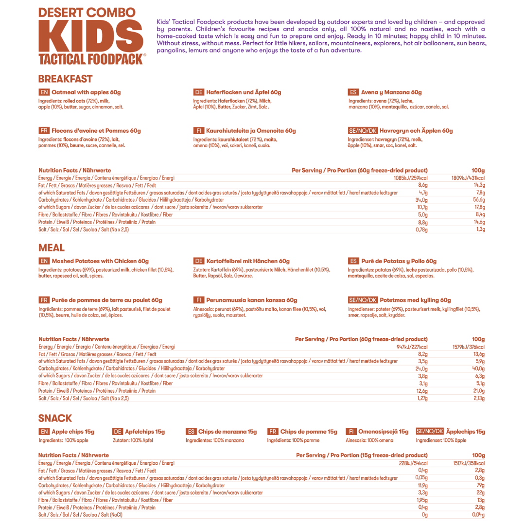Kids kombopakk Desert on matkatoodete sari, mis on mõeldud lastele ning on väga kerge ja kompaktne, seega seda on lihtne kaasa võtta matkale või telkima minnes.