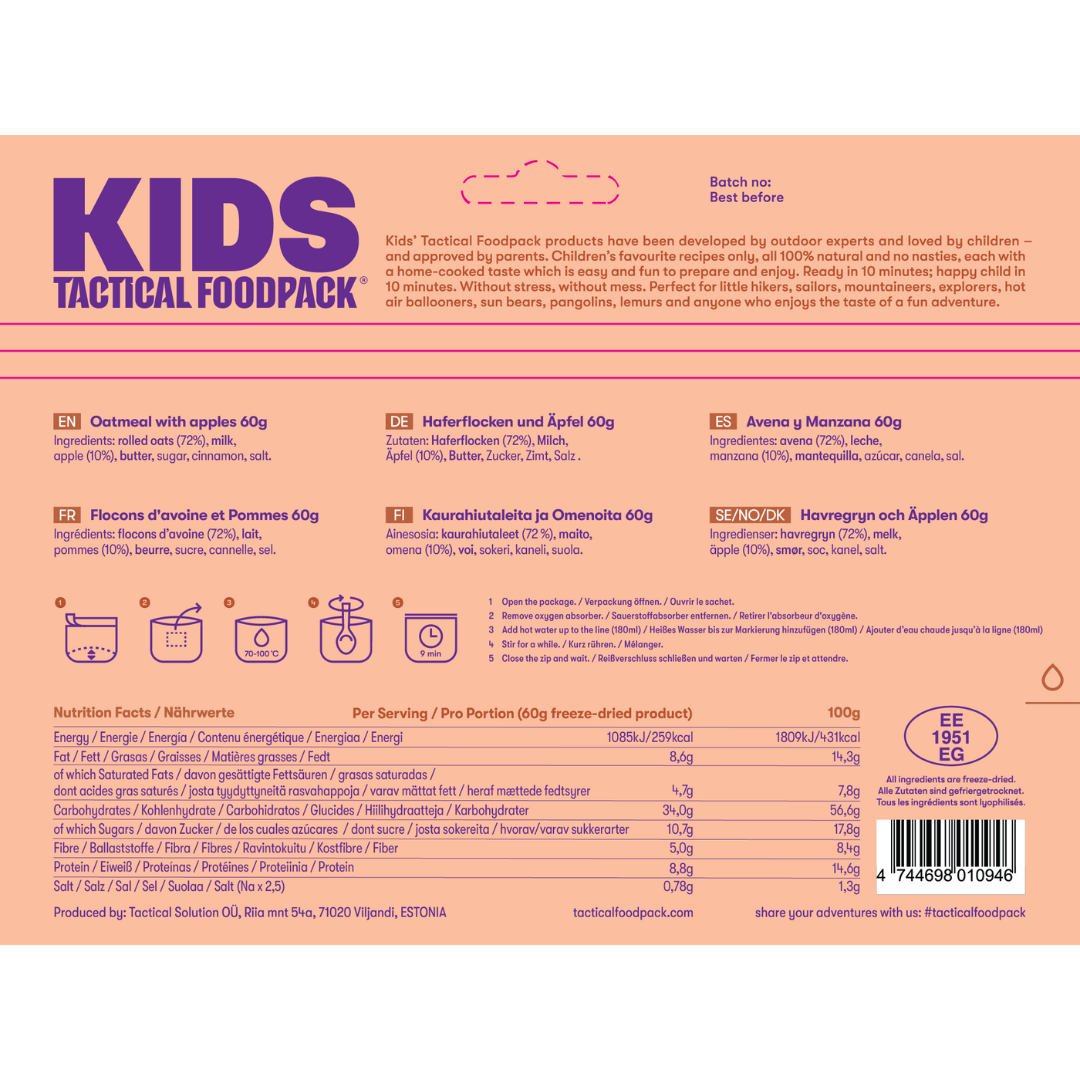 KIDS Kaerahelbepuder õuntega – maitsev hommikusöök koos värskete külmutatud õunte ja kaneeliga, et säiliks värskus ja mahlakus. Korralik hommikusöök, et alustada oma lõbusat matkapäeva õues.