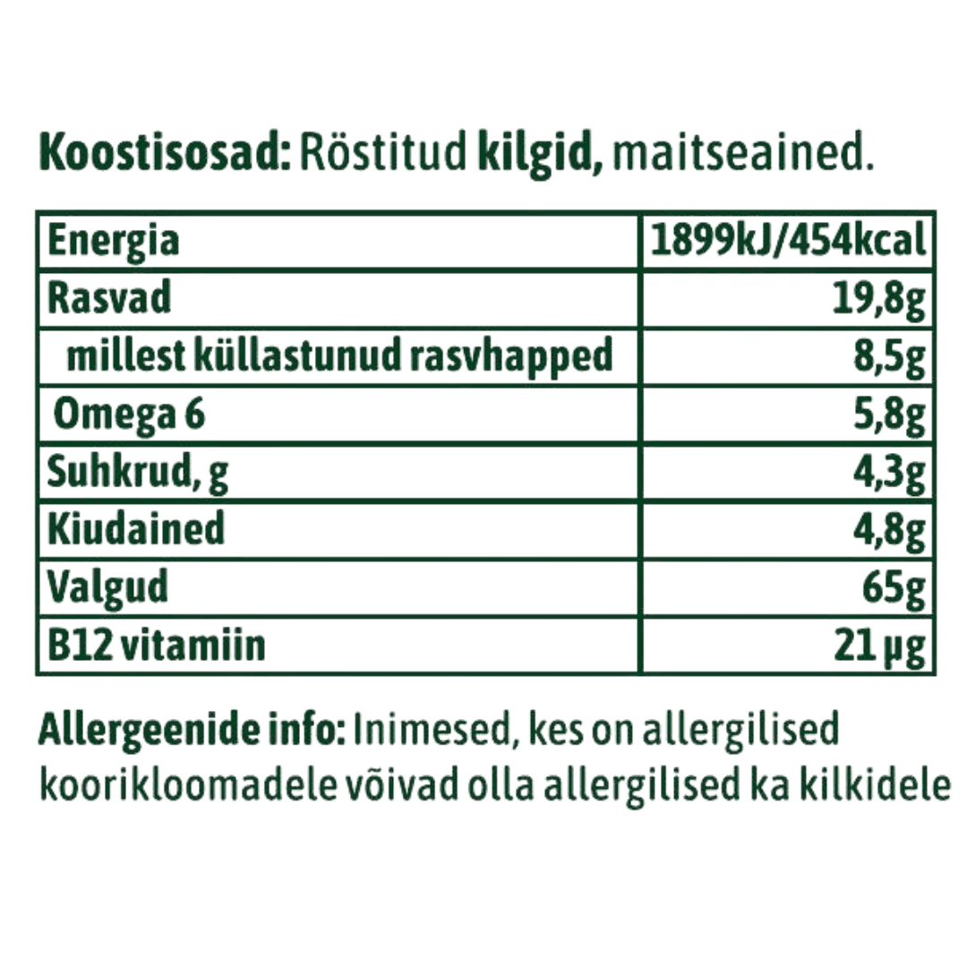 Kilgisnäkk "Särtsakas laim" on värskendav ja hapukas, pakkudes suurepärast maitseelamust. See on valmistatud hoolikalt valitud koostisosadest, mis tagavad suurepärase maitse ja toiteväärtuse. Kilgisnäkk on valmistatud spetsiaalse tehnoloogia abil, mis säilitab kilkide krõmpsuva tekstuuri ja maitseomadused. Lisaks on snäkid pakendatud mugavasse ja taaskasutatavasse pakendisse, mis hoiab need värskena ja lihtsasti kaasaskantavana.