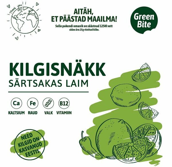 Green Bite kilgisnäkkide valik on suurepärane alternatiiv traditsioonilistele krõpsudele. Need snäkid pakuvad mitmeid kasulikke omadusi. Esiteks, valides kilgisnäkid, aitad säästa vett, kuna nende tootmine nõuab oluliselt vähem vett võrreldes krõpsudega. Teiseks, kilgisnäkid on rikkad kaltsiumi, raua ja valgu allikad ning sisaldavad ka 84% päevasest võrdluskogusest B12-vitamiini. B12-vitamiin on oluline väsimuse ja kurnatuse vähendamiseks ning närvisüsteemi normaalse talituse tagamiseks.
