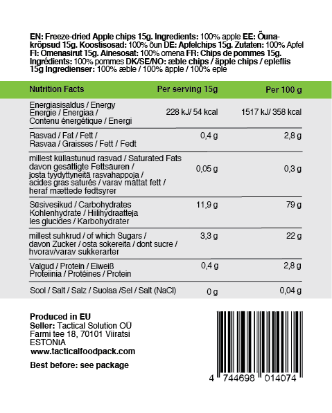 Kui otsid tervislikku ja maitsvat suupistet, siis kuivatatud õunakrõpsud on hea valik! Valmistatud ilma lisatud suhkruta, need krõpsud on täis naturaalset õuna maitset ja krõmpsu. Külmkuivatamise tehnoloogia säilitab õuntes kasulikud toitaineid ja vitamiinid.