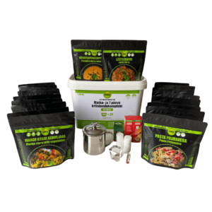 Kui suundud linnast välja matkale, kalastusreisile, jahile või hoopis blokeerib marutuulega langenud puu sõidutee ja kodust ei pääse välja mitme päeva jooksul, tuleb valmis olla. Matka- ja 7 päeva toiduvarukomplekt laseb tunda rahulolu, et toidukorrad on kaetud vähemalt terve nädala jagu. Lisaks leiad kompletist vajalikud lisad toidu valmistamiseks.