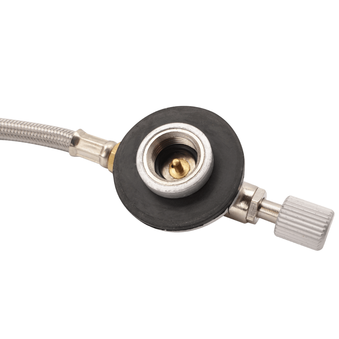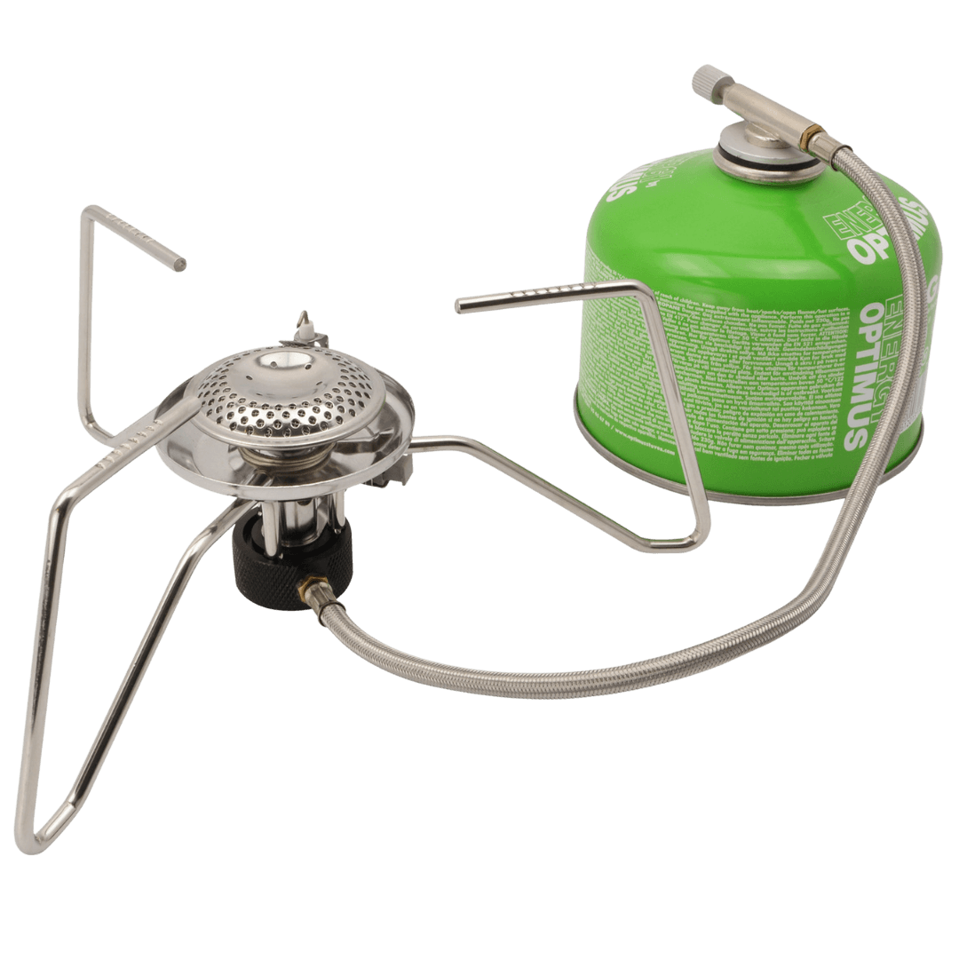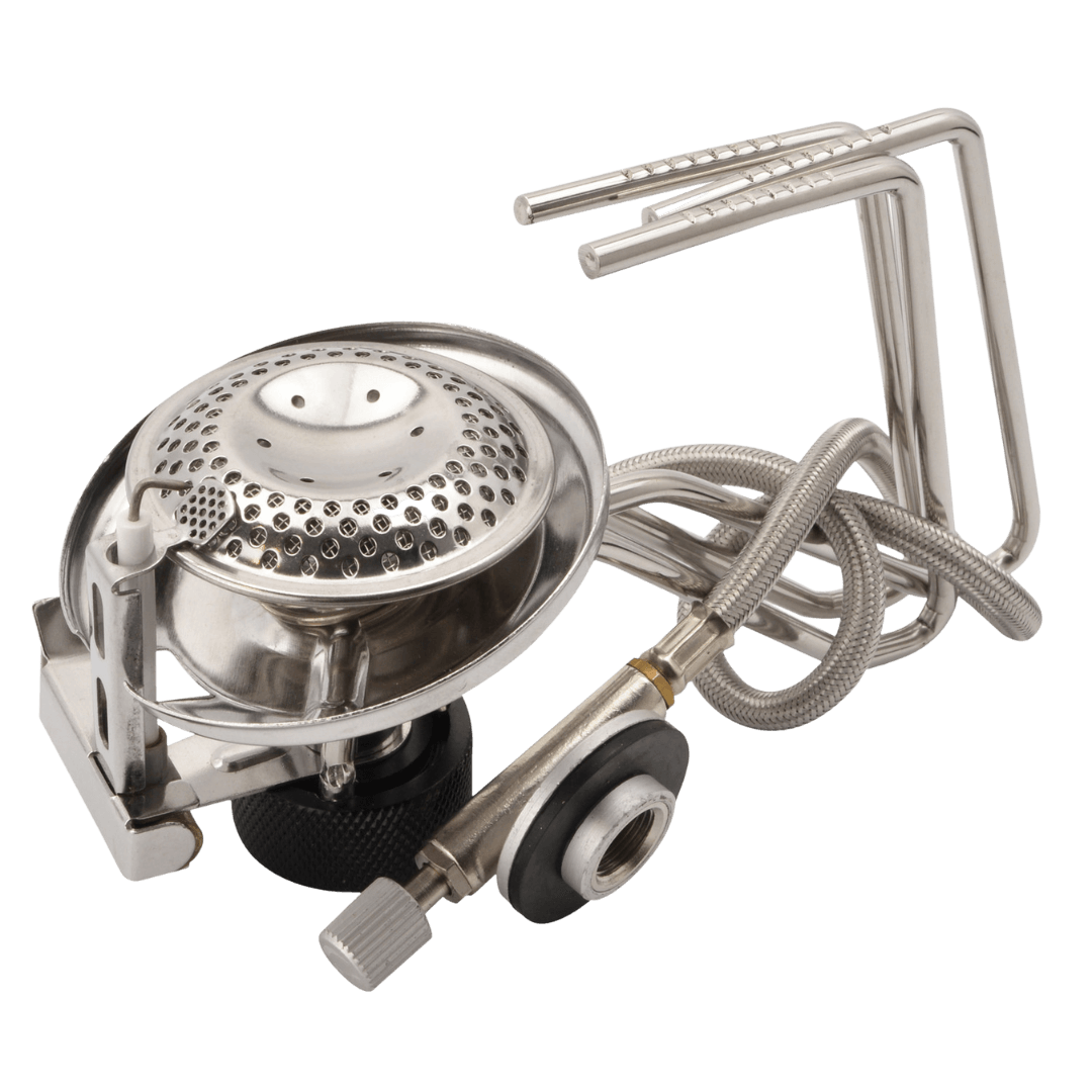 Võimas matkapliit piesoelektrilise süütajaga ja reguleeritava leegiga. EN417 spetsifikatsioonile vastav gaasiballoon ühendatakse pliidiga metallsukaga kaetud vooliku abil.
