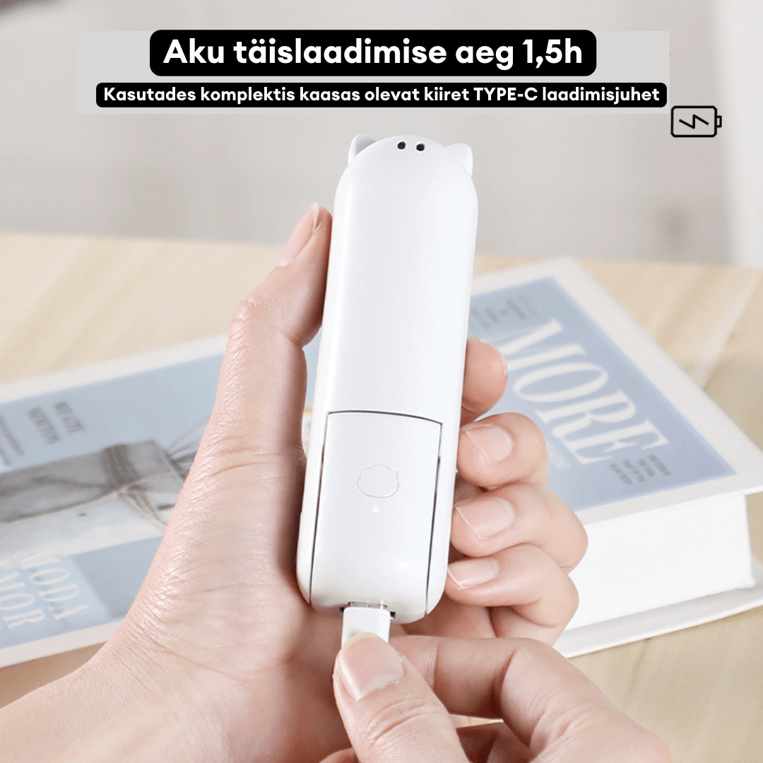 Ventilaatoril on 2000 mAh aku, mida saate laadida Type-C liidese abil, mis võimaldab kiiret ja tõhusat laadimist. Ühe laadimiskorraga saab ventilaator töötada pidevalt 7-10 tundi, ilma et oleks vaja vahepeal laadida. See on mugav, eriti kuumadel suvepäevadel või olukordades, kus elektriühendust pole kergesti kättesaadav.