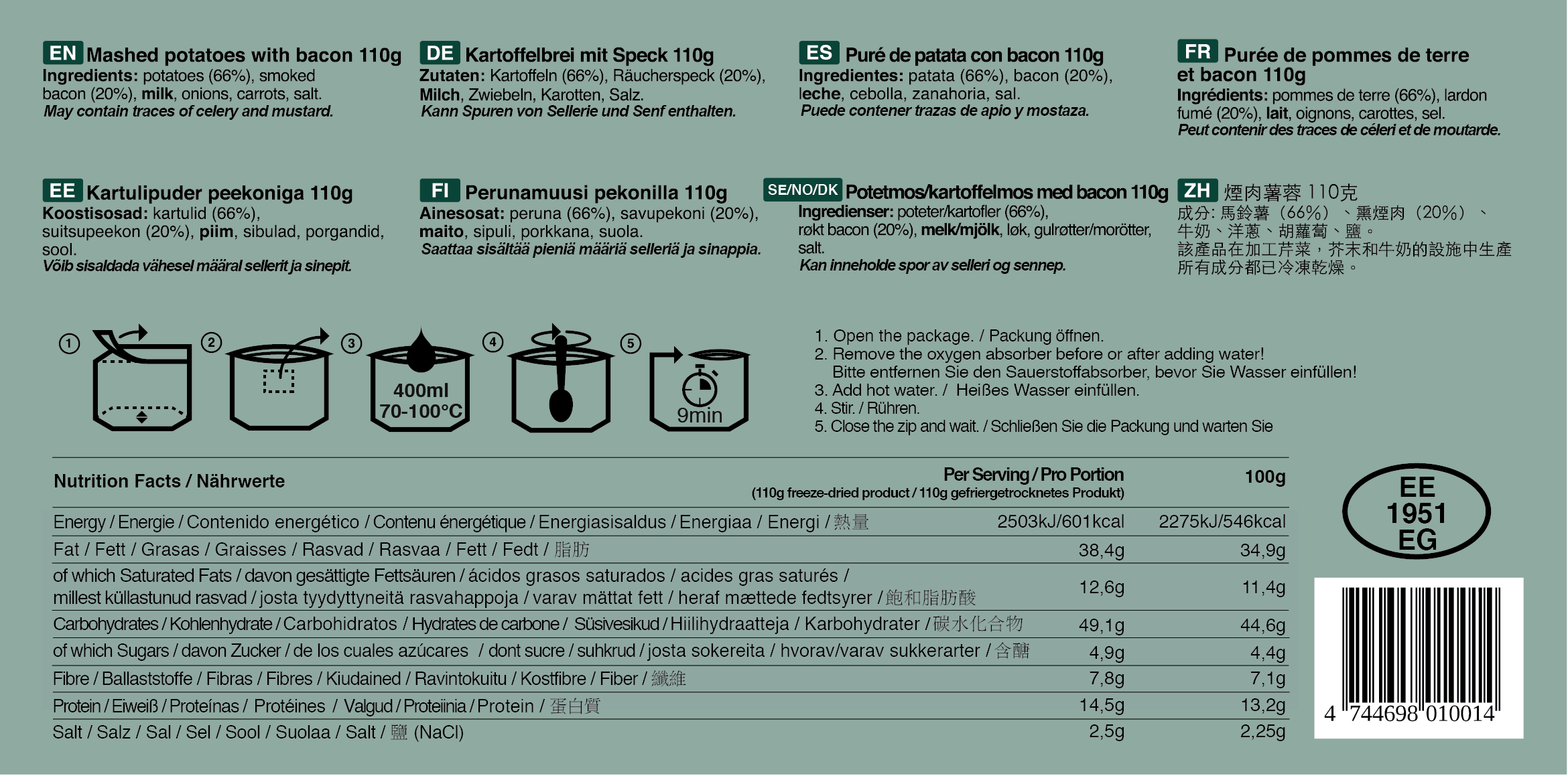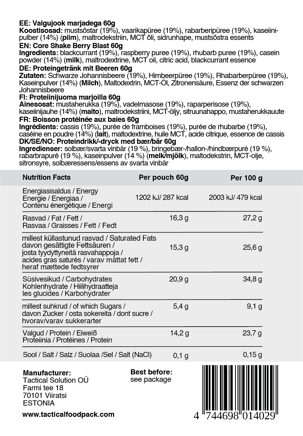 1 Meal Ration Delta energiasisaldus: 1376 kcal