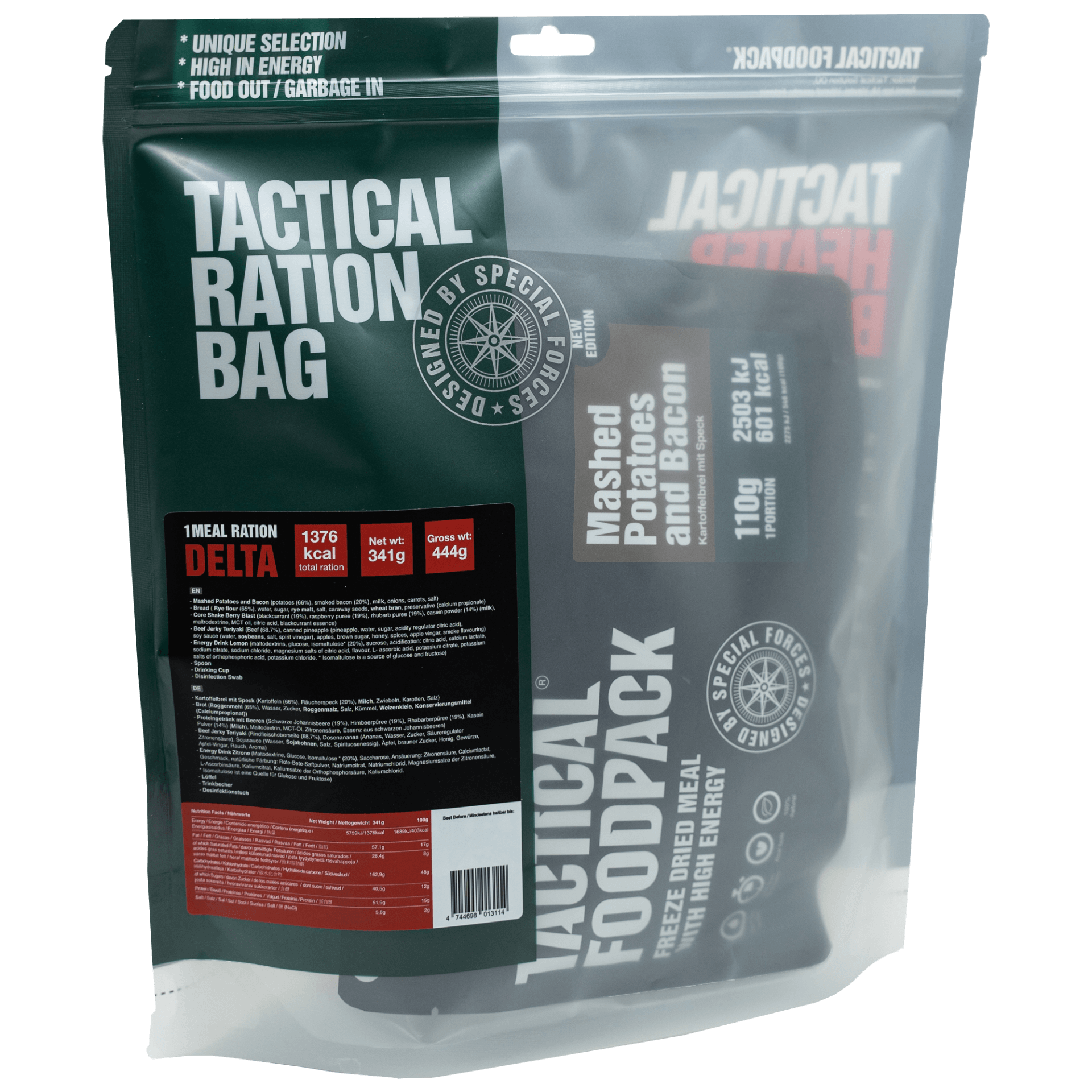 Tactical Foodpack ratsioonid Delta, Echo ja Foxtrot on mõeldud ajaliselt lühemateks väljakutseteks. Ratsioonid sisaldavad ühte Tactical Foodpacki einet, erinevaid vahepalasid ning energiajooki. Lisadena kaasas lusikas, Tactical joogitops ning desinfitseeriv kätepuhastuslapp. Ratsiooni pakk on taassuletav.
