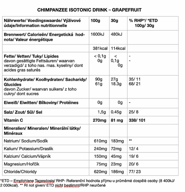 - Greibimaitseline energiajook - netokaal 30 g, energiasisaldus portsjoni kohta 114 kcal