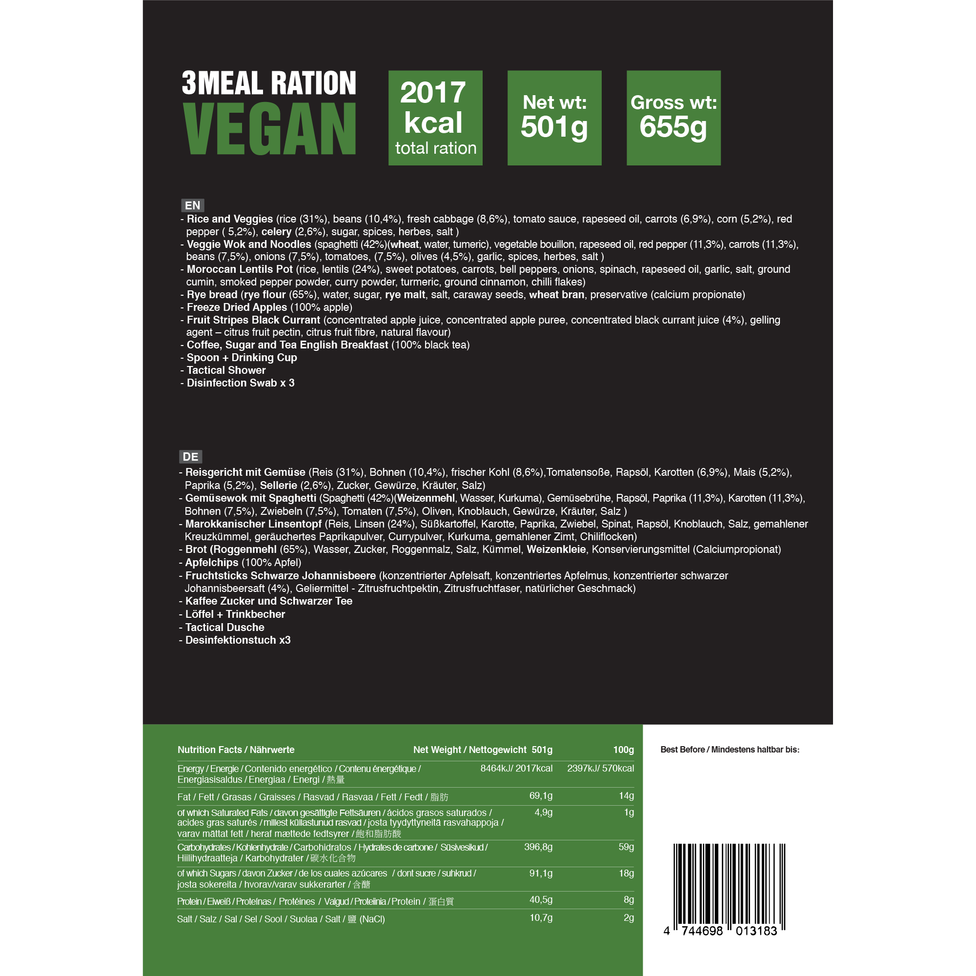 - 3 Meal Ration Vegan energiasisaldus: 2017 kcal