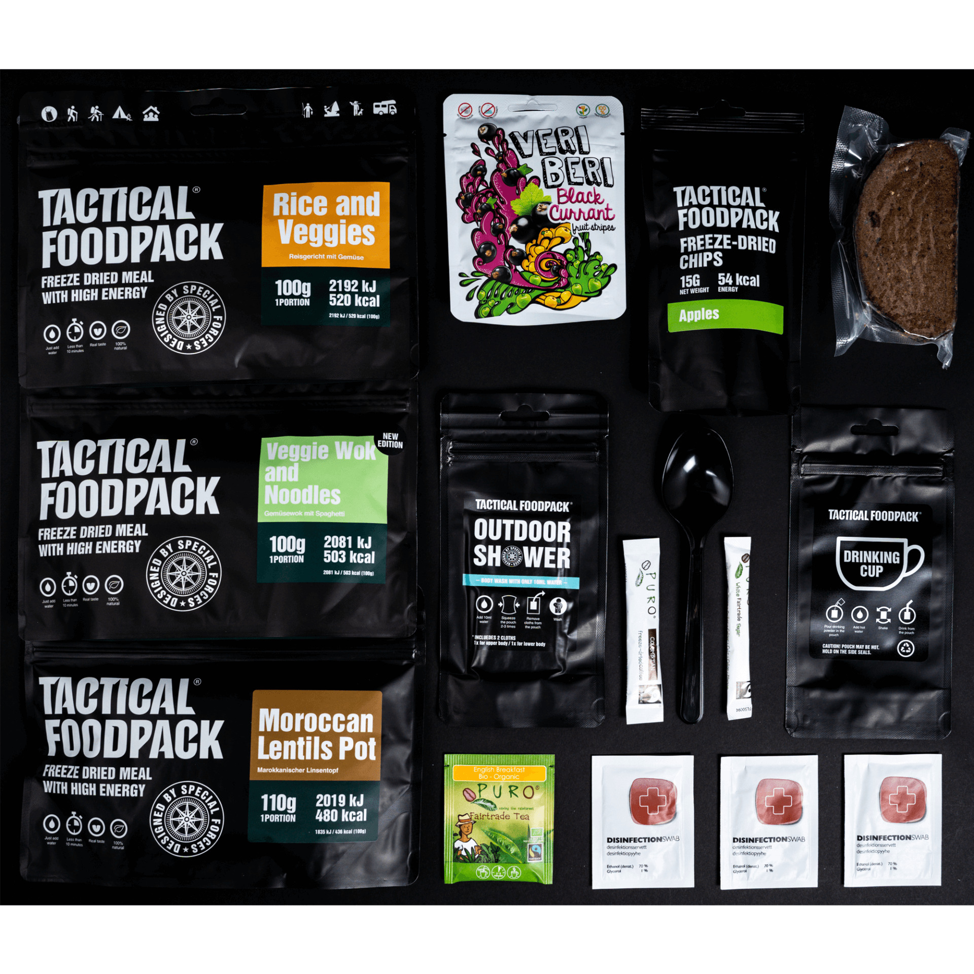 Vegan Ratsioonid nüüd saadaval! Vegan 3 meal pakist leiad Riisiroa köögiviljadega, Köögiviljavoki nuudlitega and Maroko läätsepaja. Vahepaladeks oleme lisanud leiva, puuviljaribad ja külmkuivatatud õunakrõpsud. Päeva alustamiseks leiad pakist kosutava kohvi ja lõpetamiseks orgaanilise tee.