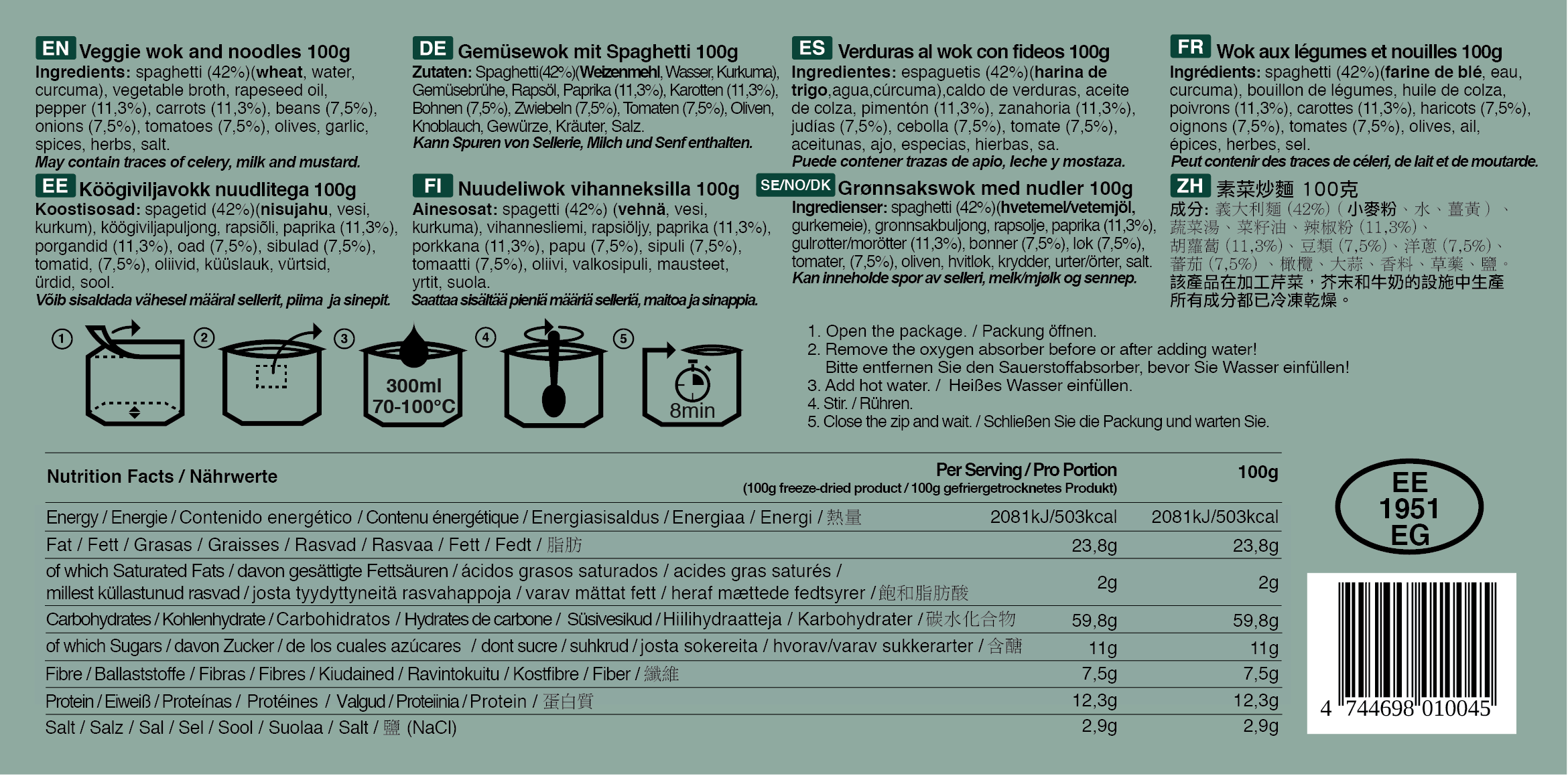 - Köögiviljavokk nuudlitega – netokaa 100g, energiasisaldus portsjoni kohta 503 kcal
