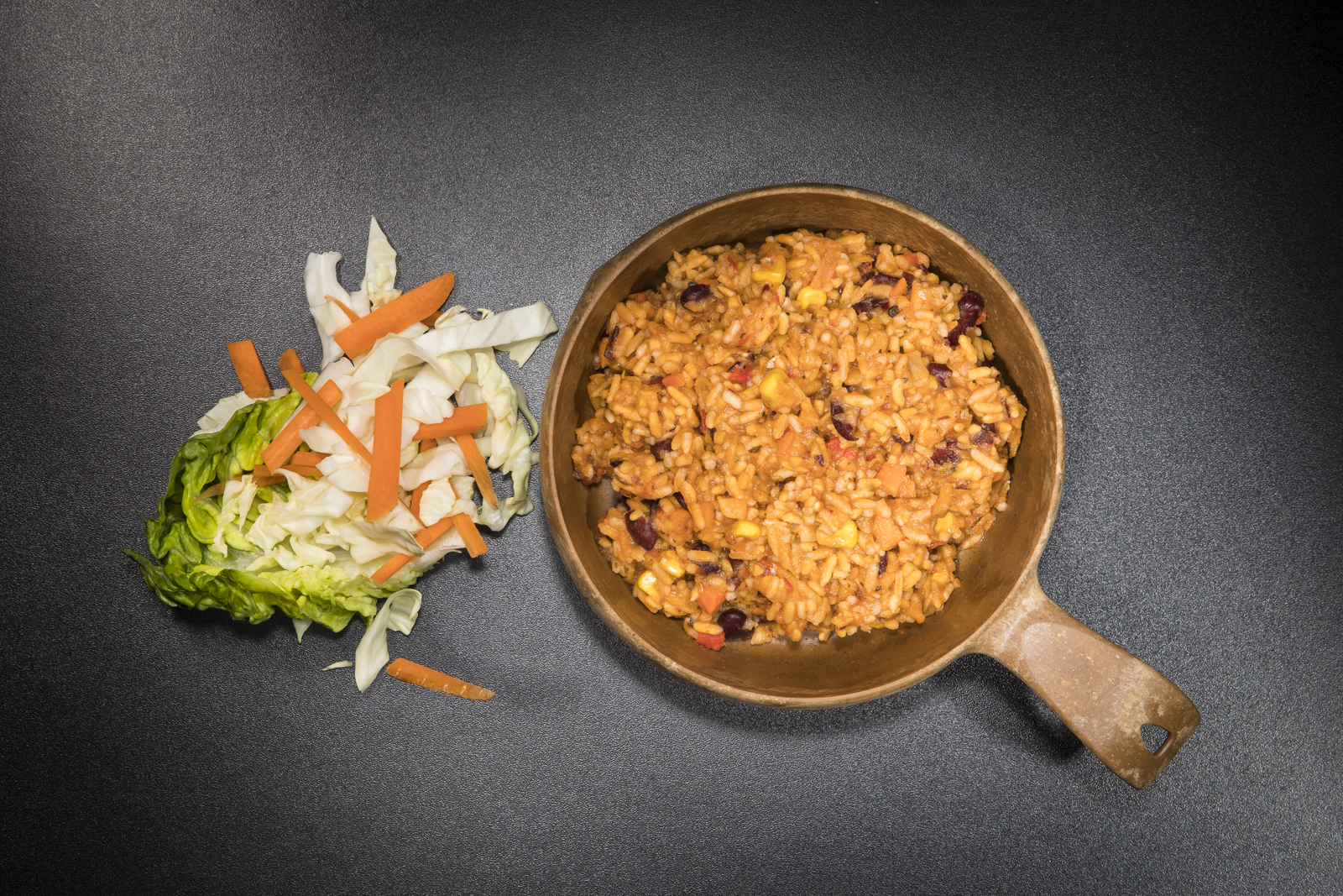 Riis (31%), uba (10,4%), värske kapsas (8,6%), tomatipasta, rapsiõli, porgand (6,9%), mais (5,2%), paprika (5,2%), varsseller (2,6%), suhkur, vürtsid, ürdid, sool. Tulenevalt tootmisliinist võib toode sisaldada vähesel määral piima ja sinepit.