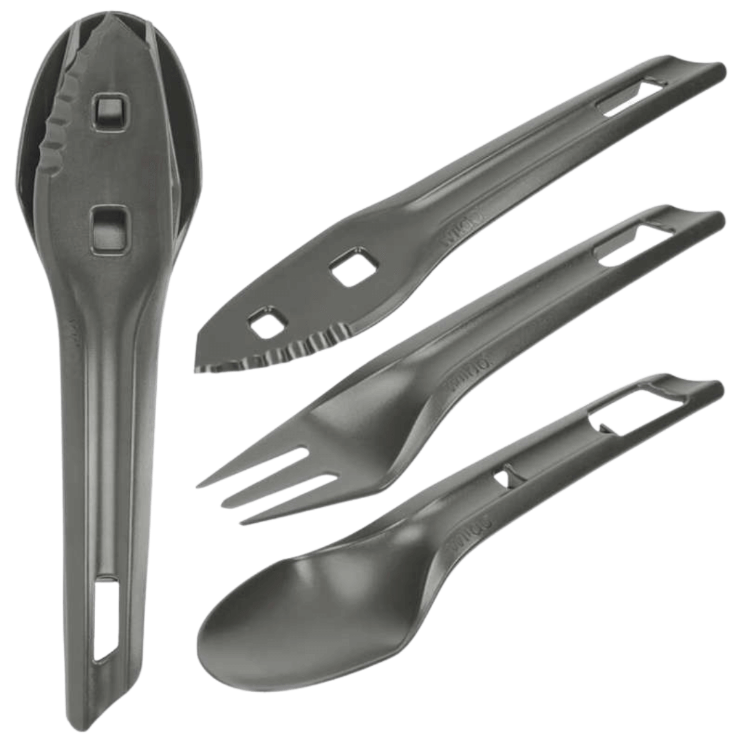 THE OCYs™ söögiriistad käivad klõpsuga üksteise peale kinni, mis garanteerib selle, et need ükshaaval kaduma ei lähe ja on alati ühes kohas koos. Komplektis olev nuga on disainitud selliselt, et on mugavalt kinnitatav pikenduseks lusikale ja kahvlile. Tänu sellele, jääb su käsi puhtaks ka süües kõige sügavamast matkatoidupakist või potist.