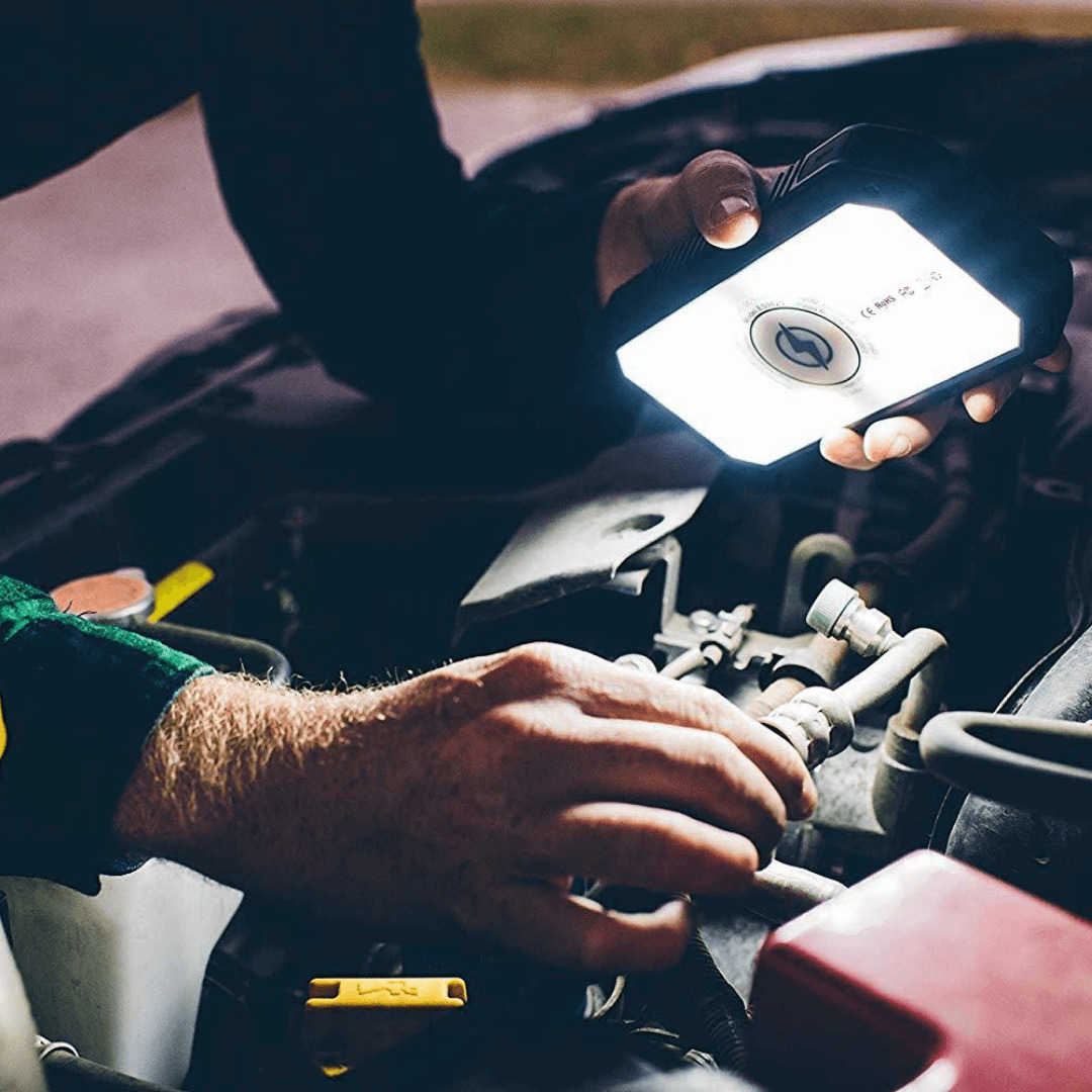 Akupank toimib samuti kui korralik valgusallikas. Seadme alumine külg on terves ulatuses kaetud võimsate LED lampidega. Kui tavalisel taskulambil või pealambil on 1-3 LED lampi, siis sellel akupangal on neid lausa 36 tk, mis korraga tööle hakkavad!!! See võimaldab kasutada erakordselt tugevat valgustit olukordades, kus päevavalgust enam ei ole või on vaja lisavalgust. Lambil on 3 eri valgusreziimi, mis võimaldavad kas pikaajalist valgustatust või veidi lühemalt väga eredat valgust. Tugeva valgusvihu reziimi kasutamisel on LED lambi valgustugevus 800 lm.